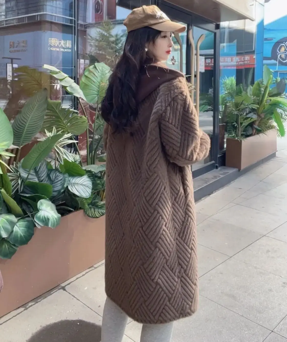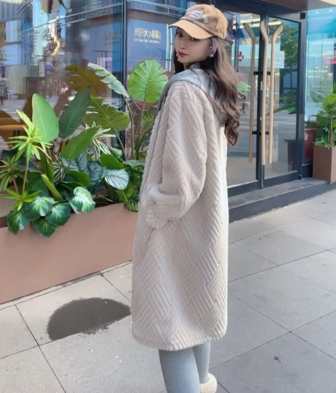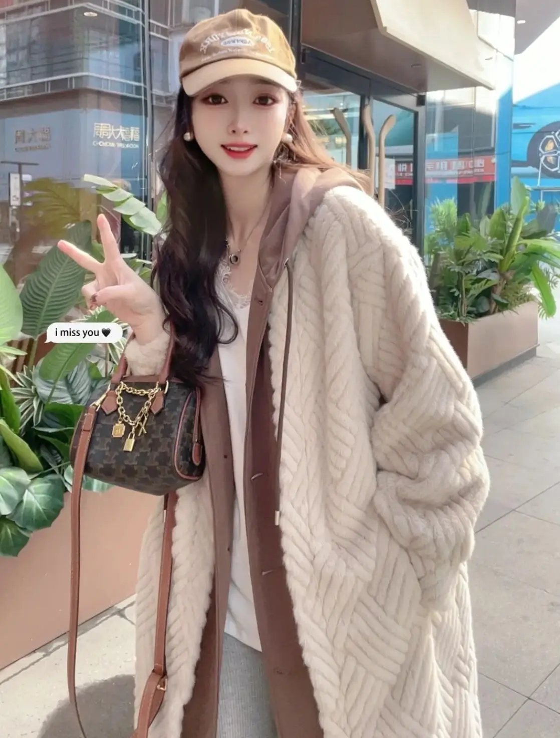 Faux Mink Fur Coat for Women,Single Breasted Long Jacket,Fake Two Items,High Quality,Hooded,Female Clothes,New,Winter